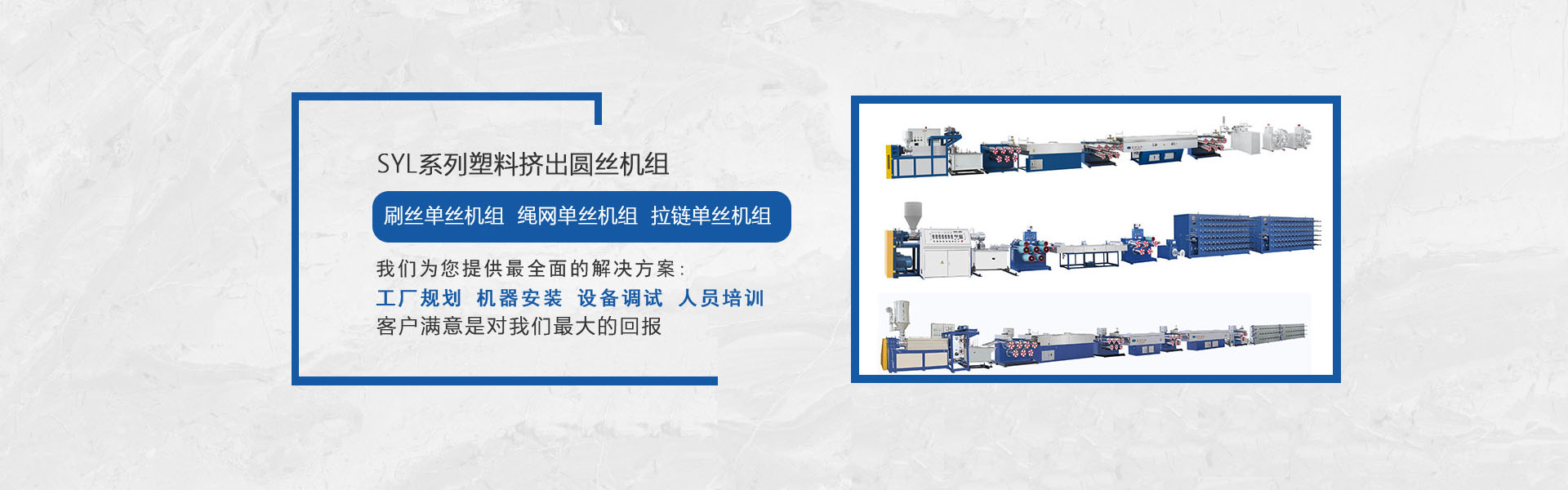 我司是專業(yè)生產(chǎn)塑料擠出圓絲、平膜扁絲機組等及其聚酯托幕線等配套附件、部件的專業(yè)化、正規(guī)化的企業(yè),公司集行業(yè)專家的豐富知識,多年積累的經(jīng)驗,結合國外同行先進技術,研發(fā)制造出系列圓絲擠出機組,在主要技術指標和性能上已處領先水平,我們正不斷優(yōu)化管理,強化細節(jié),使之能更好地為廣大用戶提供從技術、制造到工藝的全方位服務。